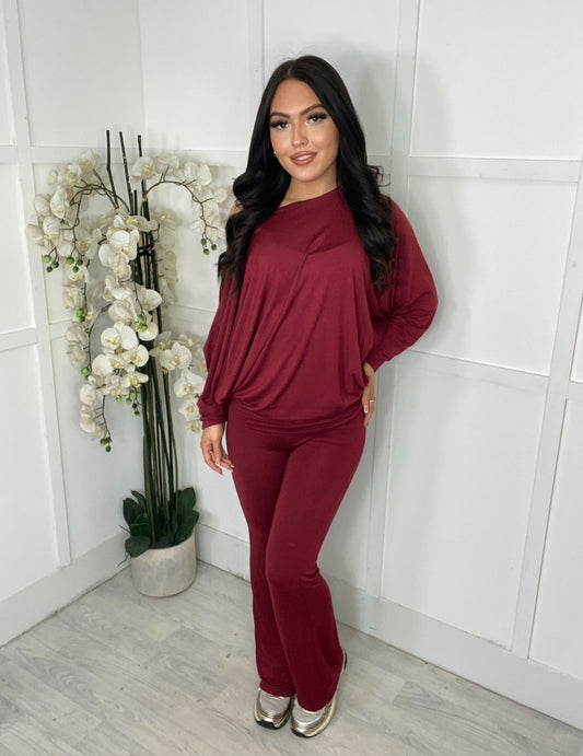 OFF SHOULDER TOP AND WIDE LEG TROUSER SET