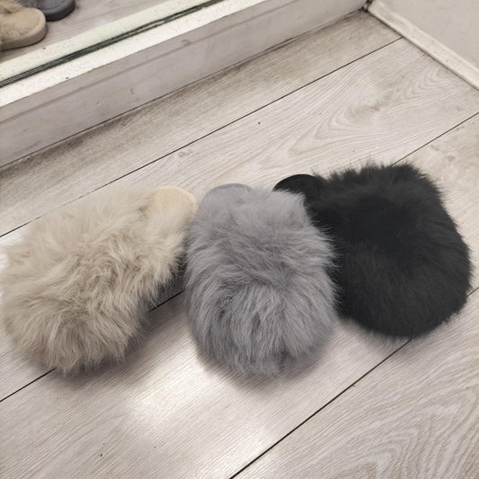 GREY EXTREME OVERSIZED FAUX FUR FLUFFY SLIPPERS